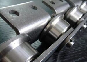 - Roller ( ลูกกลิ้งโรลเลอร์) เป็นจุดที่รับแรงเสียดทานต่อการทำงานของโซ่ลำเลียงมากที่สุด วัสดุในการผลิตใช้งานเช่น 40Cr,SCM440, SUS304 หรือ SUS420 พร้อมชุบแข็ง เป็นต้น
