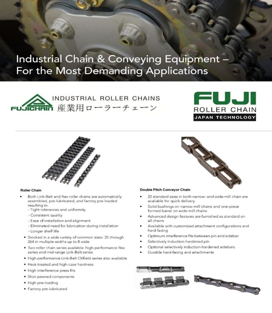 โซ่อุตสาหกรรม FUJICHAIN โซ่เครื่องจักร โซ่ขับคุณภาพสูง มีสต๊อกหลากหลายเบอร์ให้เลือกใช้ ในราคาผู้ผลิต จัดส่งเร็วจากคลังสินค้าในไทย การเทียบเบอร์โซ่อุตสาหกรรมที่หลากหลายคนยังไม่รู้เนื่องจากโซ่เครื่องจักรส่วนมาก ถูกติดมากับเครื่องจักร ไม่ได้บอกเบอร์หรือขนาดกับผู้ใช้งานมา เมื่อถึงเวลาที่ต้องซ่อมบำรุงเครื่องจักรโดยมีโซ่ส่งกำลังหรือโซ่ที่ติดกับเครื่องจักรมาแล้วเราไม่สามารถรู้เบอร์หรือขนาดที่ถูกต้องของโซ่ได้